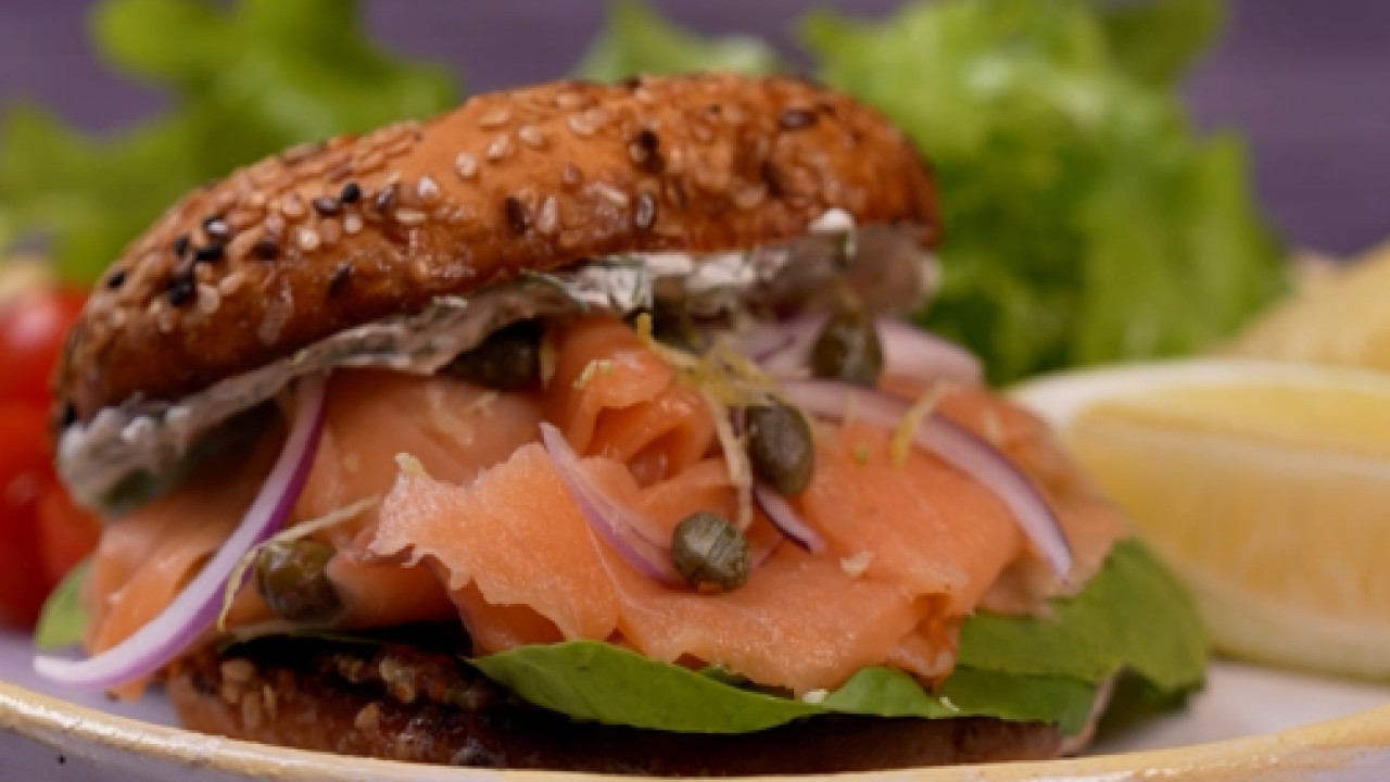 - نقدمه فورًا كساندوتش مفتوح أو ممكن نغلق البيجل حسب الرغبة.