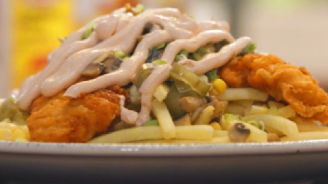 تُرص المكونات وتُضاف الصوصات وتُقدّم ساخنة.