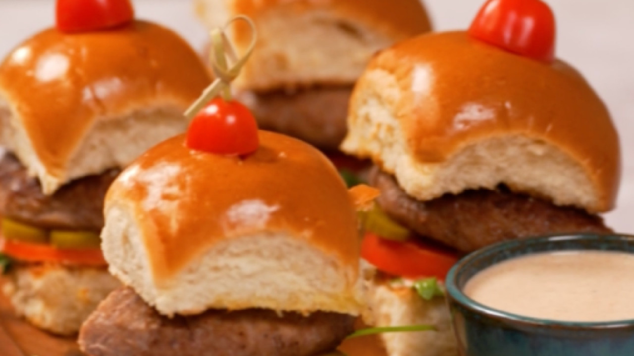 • شكّلي برجر كريفز المطبوخ على هيئة أقراص كفتة صغيرة.