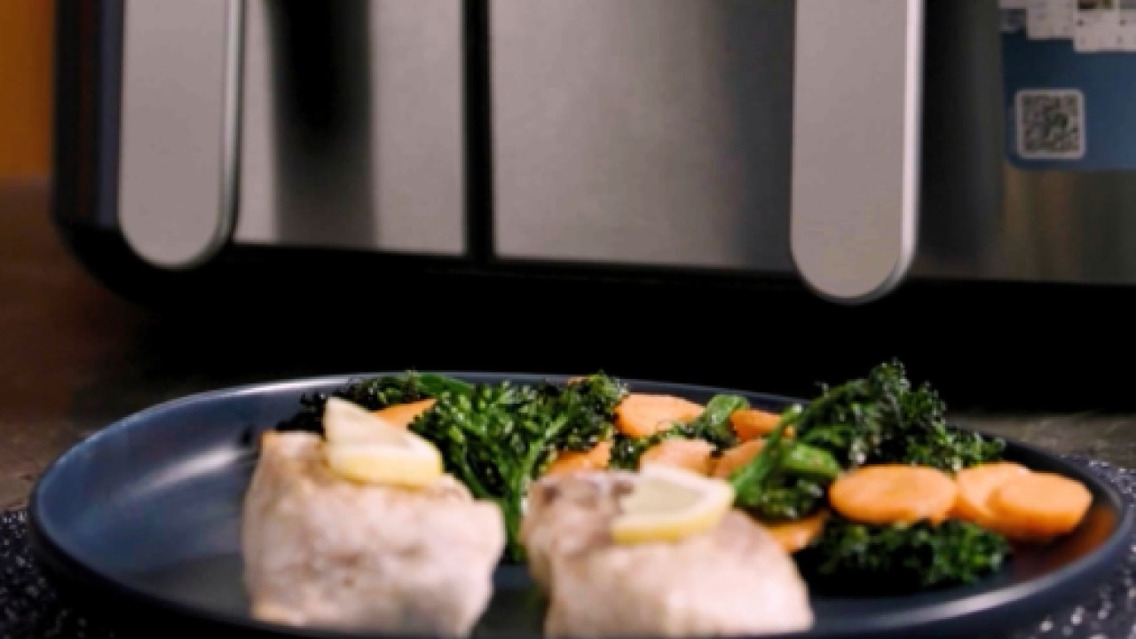 سمك بالليمون مطهو على البخار مع خضار مقرمشة خفيفة