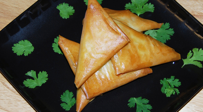 يترك السمبوسك في الفرن لمدة من 4 إلى 7 دقائق حتى يصبح ذهبي اللون