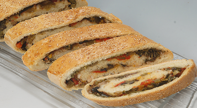 تخلط جميع المكونات الجافة وتوضع فى العجانة. يضاف إليها زيت الزيتون وتفرك جيداً ثم تُضاف الخميرة ويُضاف الماء الدافئ تدريجياً مع العجين ثم يُضاف الملح ويُعجن لمدة 15 دقيقة، بعدها يُضاف الزيتون المقطع، ويُخلط أو يُعجن لمدة دقيقتين أو أقل. تشكل على شكل باجيت وتوضع في صواني مدهونة وتترك لتختمر إلى أن يتضاعف حجمها.