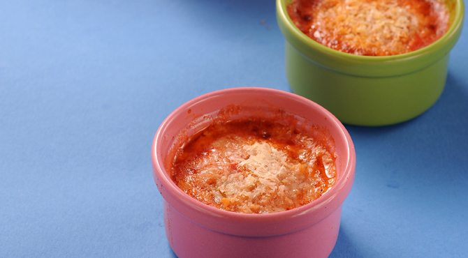 يوضع البقسماط وجبنة البارميزان على الوجه.