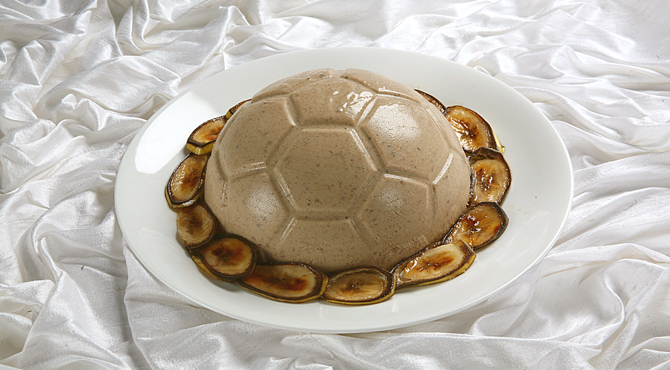 يذوب الجيلاتين في الماء الدافئ ثم يسكب من خلال مصفاه فوق خليط البيض مع إستمرار التقليب.