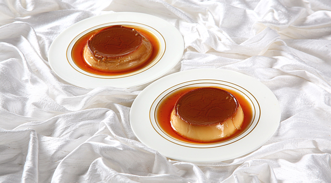 توضع الصينية في فرن بدرجة حرارة 150 درجة مئوية لمدة 40 دقيقة حتى تتماسك حواف الكريم كارامل دوناً عن الوسط.
