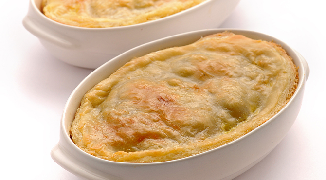 توضع لفافة واحدة من عجينة الباف بيستري في صينية الخبز وتُخبز.