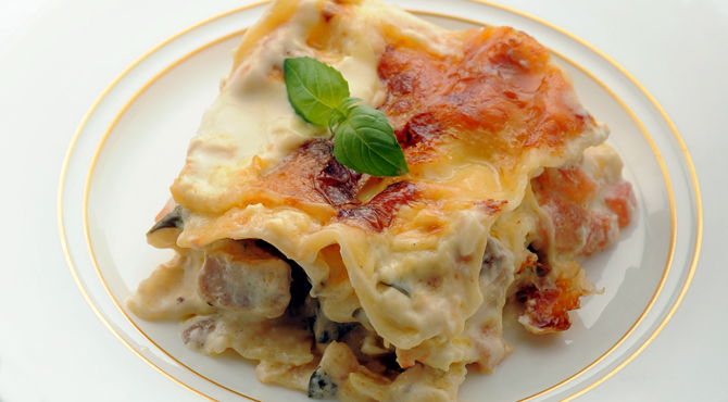 تُخبز اللازانيا في الفرن لمدة 30 إلى 40 دقيقة.