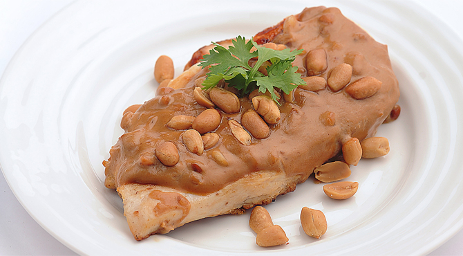 تُزين بالفول السوداني والكزبرة الطازجة.