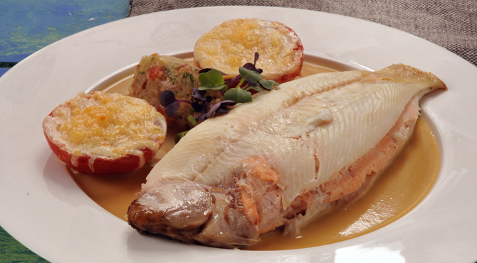 يشوى السمك في الفرن على درجة حرارة 180 لمدة 20 دقيقة.