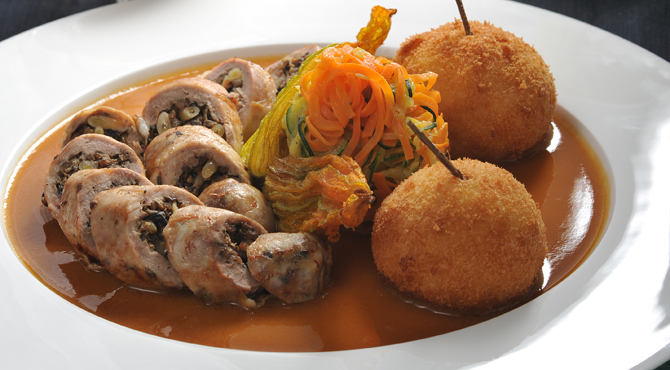 يشكل الأرز على شكل كرات وتحشى كل كرة بمكعب من جبنة الموتزاريلا.