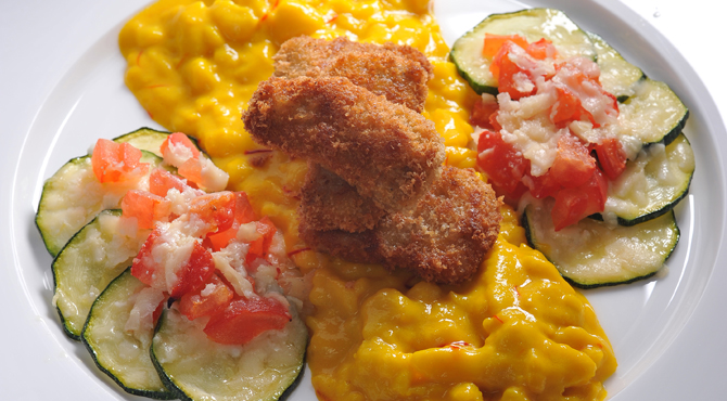 يصفى الخليط بمصفاة ناعمة في قدر آخر ويضاف الزعفران والكريمة والتوابل.