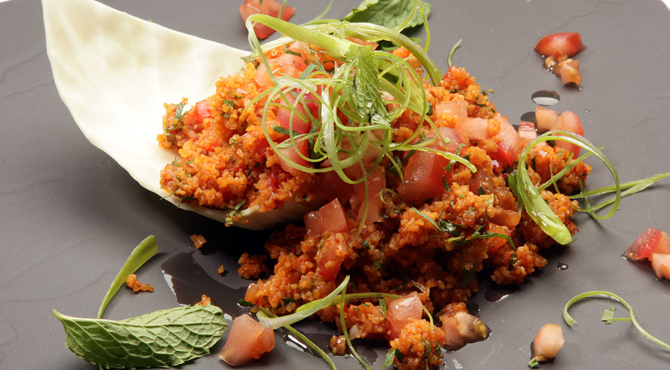 يضاف دبس الفلفل ودبس الرمان ويفرك البرغل معهم.