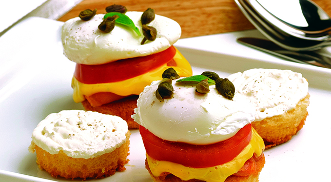 يوضع البيض على وجه المافن، ثم تضاف شريحة من الطماطم وصلصة الهولنديز والسلمون.
